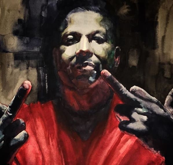 3. Cover jacket folds out into an 8"x14" poster of a watercolor painting of the artist by Alex WuKang.